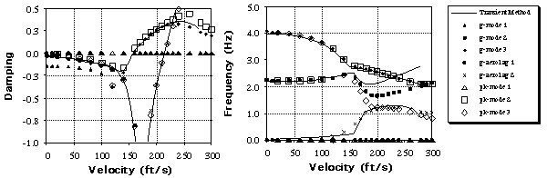 - Data mining the massive flutter results by automatically searching for the velocity-damping curve crossing at user-specified damping levels.