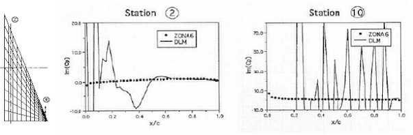 - Higher-order panel formulation for lifting surfaces than the Doublet Lattice Method (DLM). First case below shows the ZONA6 robustness over DLM.