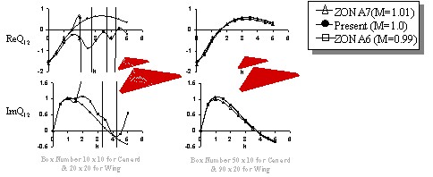 – Real and Imaginary Parts of Lift at M=1.0 are compared against the Subsonic (ZONA6 Method) at M=0.99 and the Supersonic (ZONA7 Method) at M=1.01.