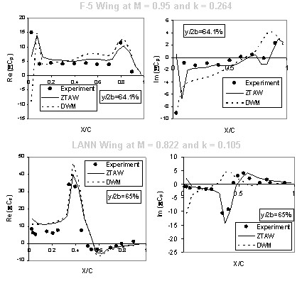 by Pitt and Goodman. With in-phase pressures obtained by wind-tunnel measurement or CFD, ZTAW yields accurate out-of-phase and higher frequency pressures resulting in well-correlated aeroelastic solutions, whereas, the previous methods yield erroneous out-of-phase pressure in terms of shock jump behavior. - Four methods are incorporated within ZTAW: the steady downwash weighting matrix method, the unsteady downwash weighting matrix method, the steady force correction matrix method, and the unsteady forc correction matrix method.
